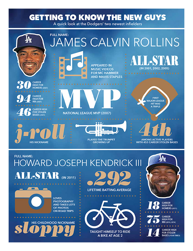 An infographic for Dodgers Insider magazine introducing the reader to two new players.